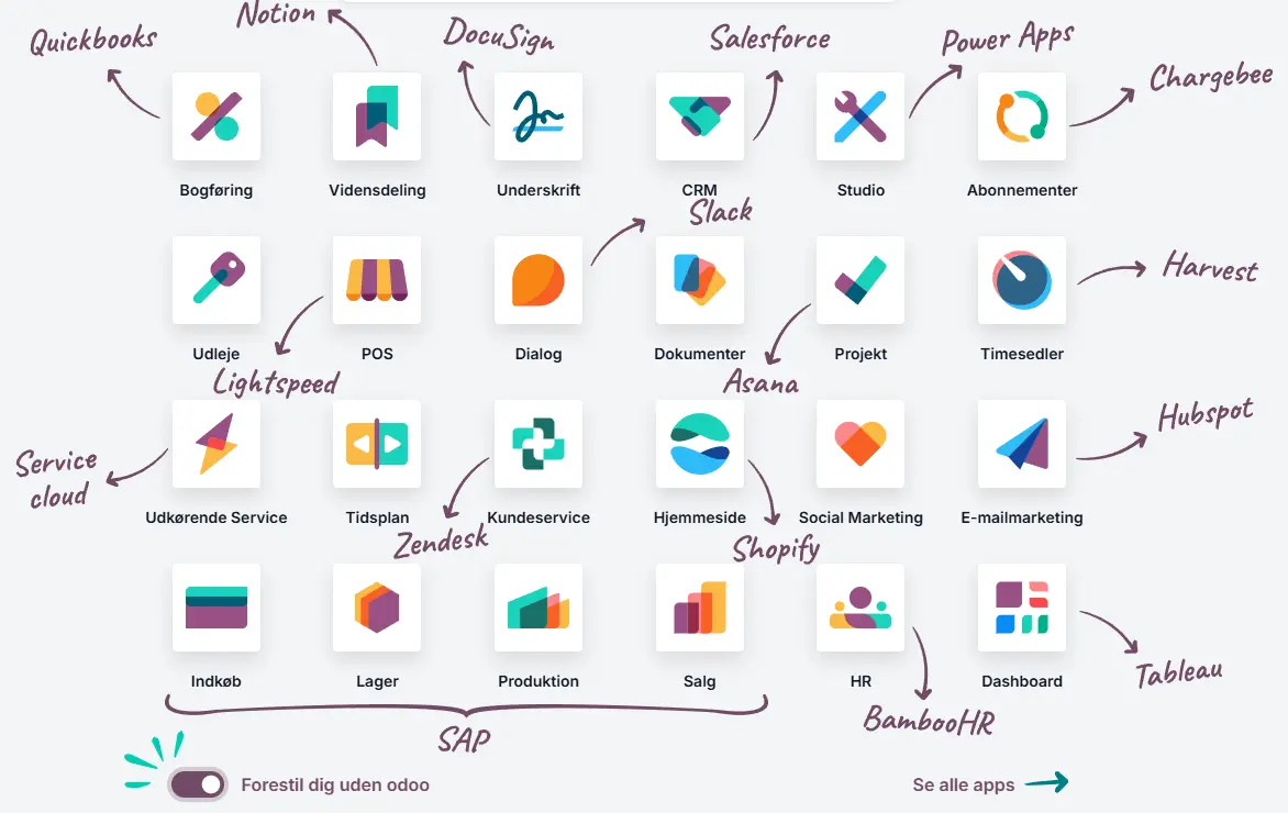 Odoo kan styre hele din virksomhed i ét system, hvilket gør det mere fleksibelt og overskueligt at arbejde med.