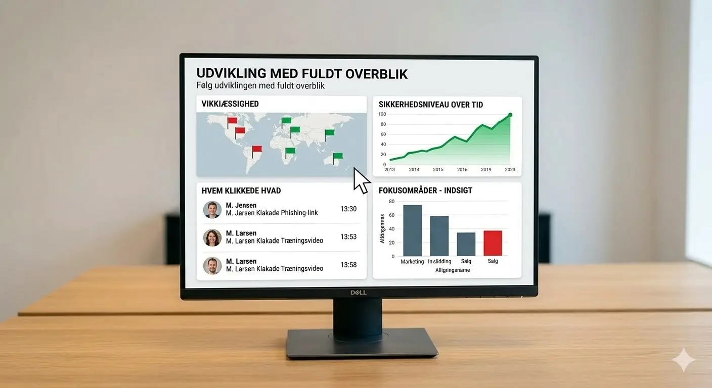 - Øjeblikkelig feedback: Hvis en medarbejder klikker på et link eller henter en fil, bliver de straks mødt af en kort, pædagogisk læringssekvens ("Micro-learning").
